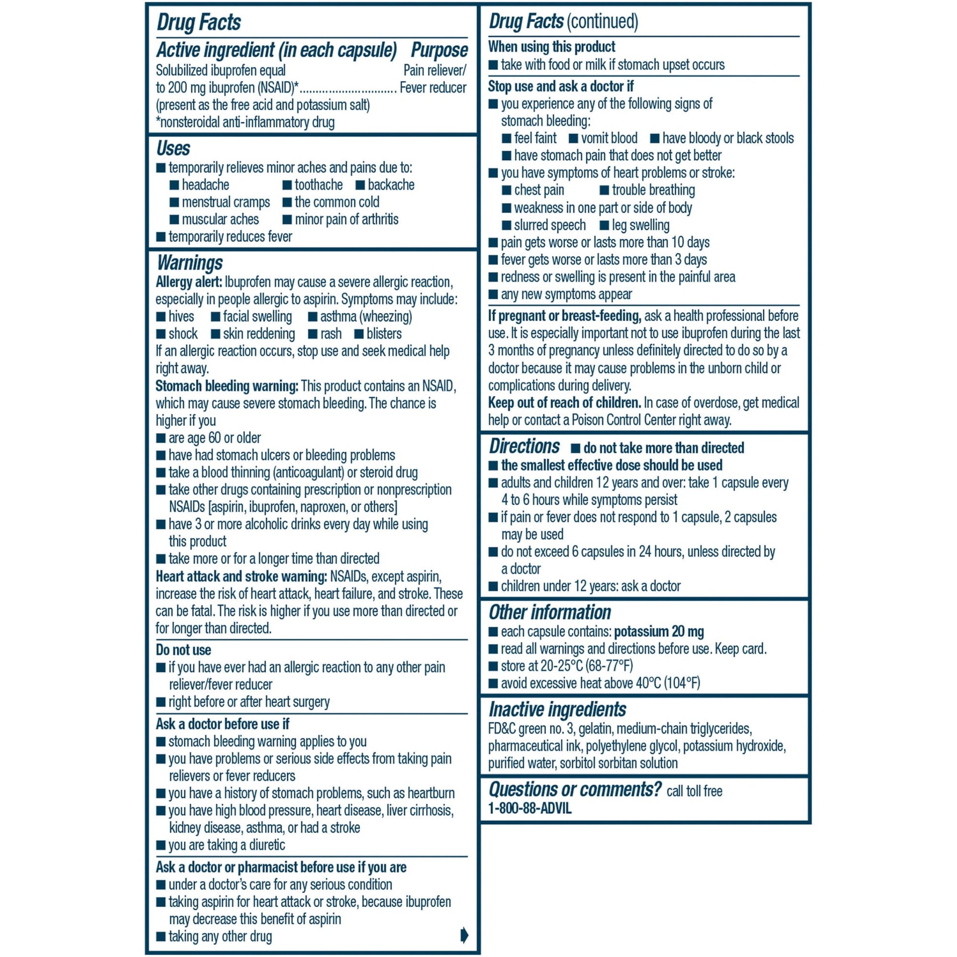 Advil Liqui-Gels minis provide the concentrated power of Advil in a 33% smaller capsule. Easier to swallow without compromising their effectiveness, these liquid-filled capsules get to work in only minutes for powerful relief of headaches, backaches, muscle aches, toothaches, menstrual pain, minor arthritis and other joint pain, and aches and pains of the common cold. Advil Liqui-Gels minis fight pain with the same strength as regular size Advil Liqui-Gels. This pain reliever and fever reducer is designed for fast absorption, providing hours of pain relief. Each mini capsule contains ibuprofen 200mg, a non-steroidal anti-inflammatory drug (NSAID) that is already dissolved, for headache relief, backache relief, menstrual pain relief, joint pain relief and minor arthritis pain relief. Fast pain relief just got mighty small. That's the power of Advil Liqui-Gels minis.