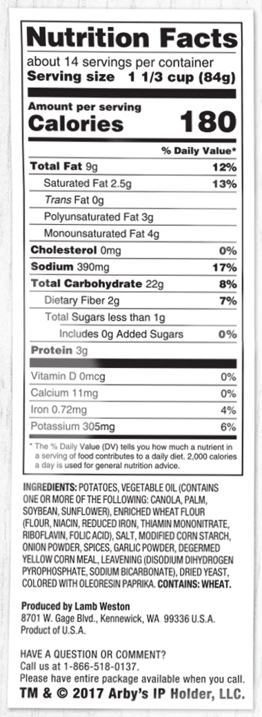 Includes one 40 oz bag of Arby's Seasoned Curly Fries