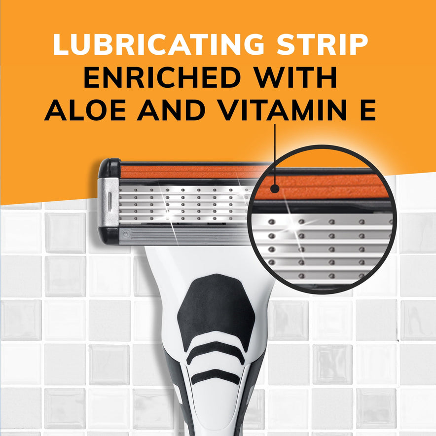BIC razors for men with a lubricating strip enriched with aloe and vitamin E for enhanced glide — the ideal face razors pack