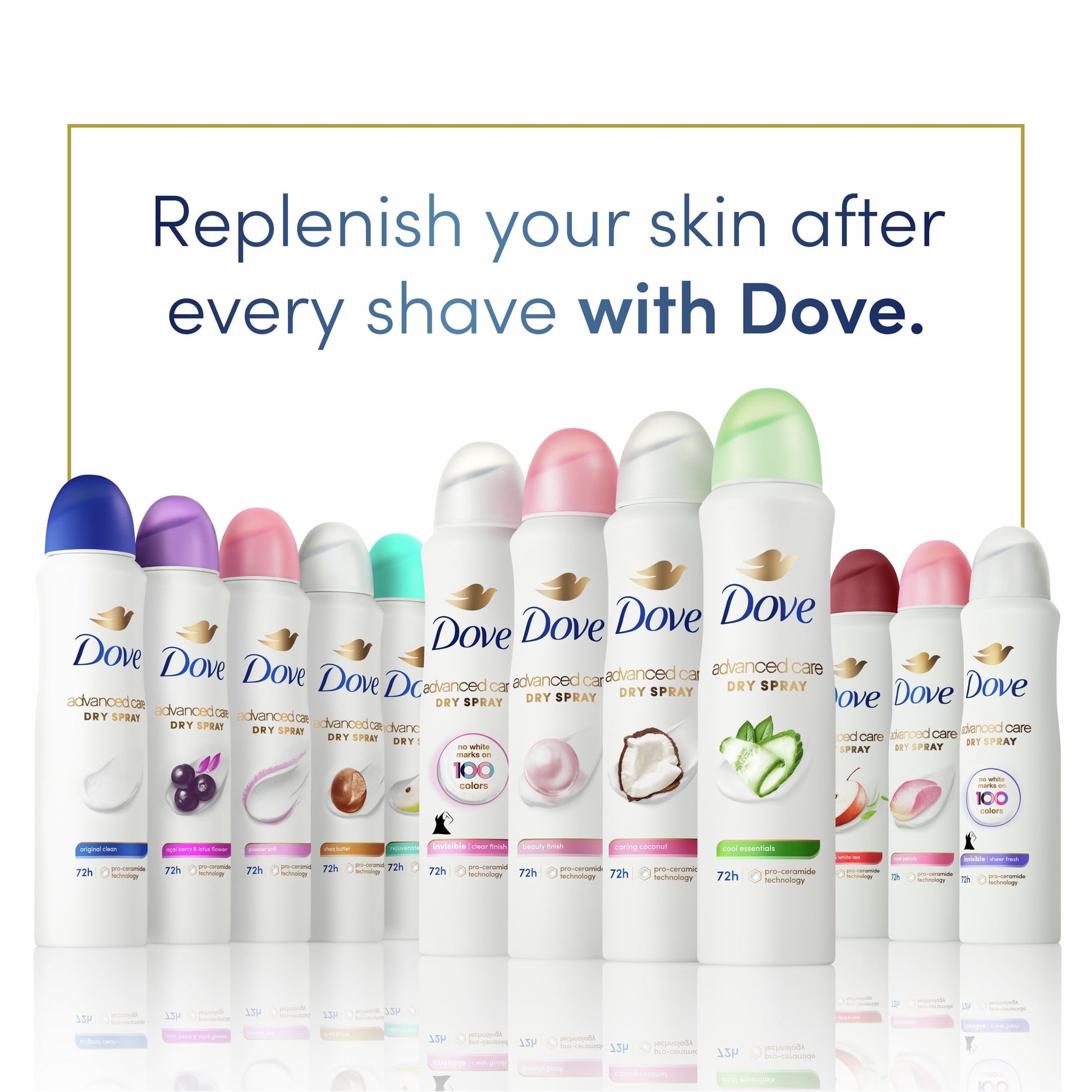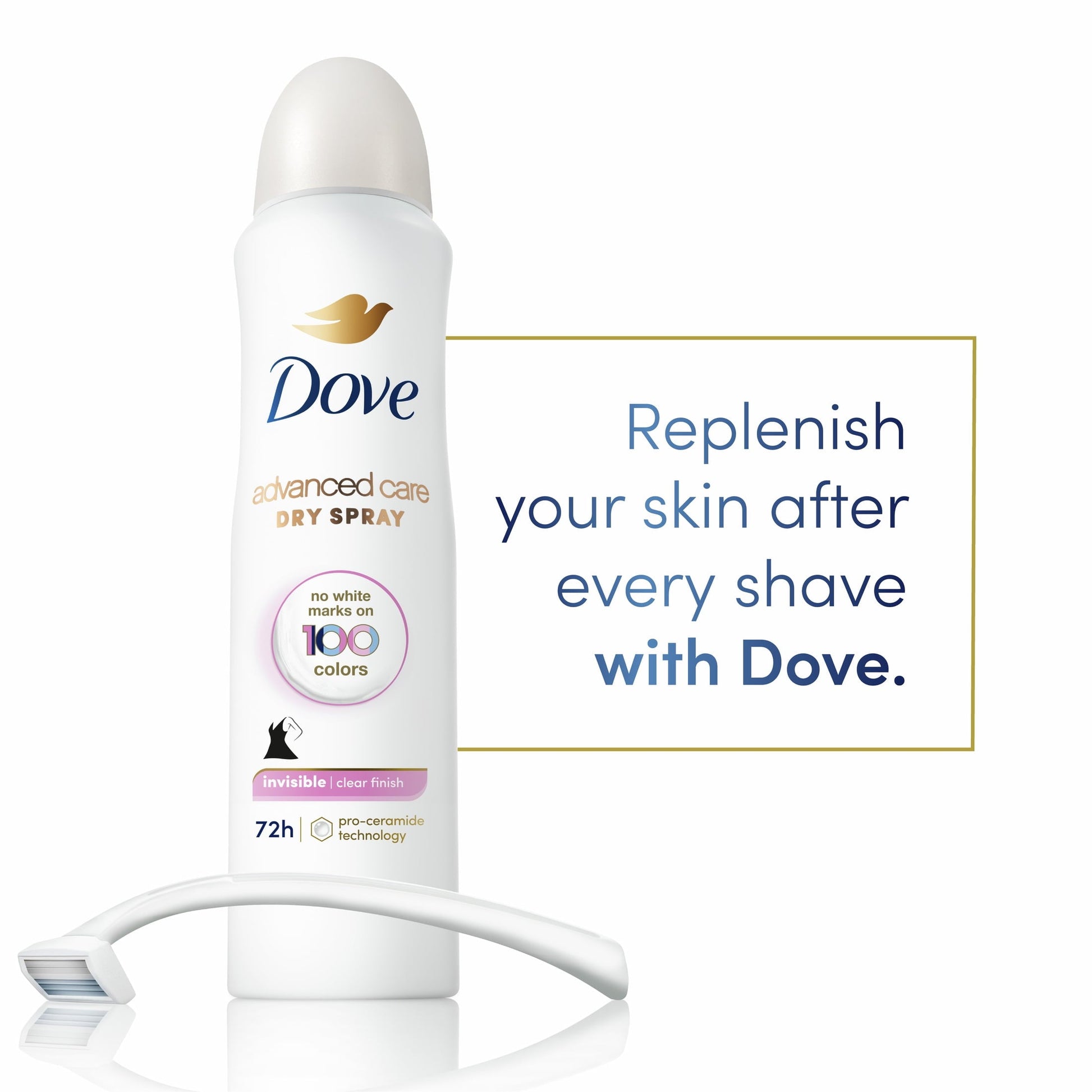 Meet Dove Advanced Care Long Lasting Women's Antiperspirant Deodorant Dry Spray, Clear Finish, the antiperspirant that doesn’t stain clothes, is tested on 100 colors and helps repair your skin’s barrier after shaving with every use. Prepare to feel uplifted and confident as you go about your day, thanks to the sparkling pineapple, pear and rose scent. Dove’s Advanced Care antiperspirant deodorant range is formulated with innovative Pro-Ceramide Technology, which works to replenish and strengthen your skin’s natural barrier by boosting ceramide levels (which naturally reduce when you shave), helping it repair and recover from shaving.