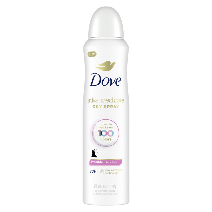 CARES & PROTECTS: Dove Advanced Care Invisible Clear Finish Antiperspirant Deodorant Spray for beautifully soft, resilient skin