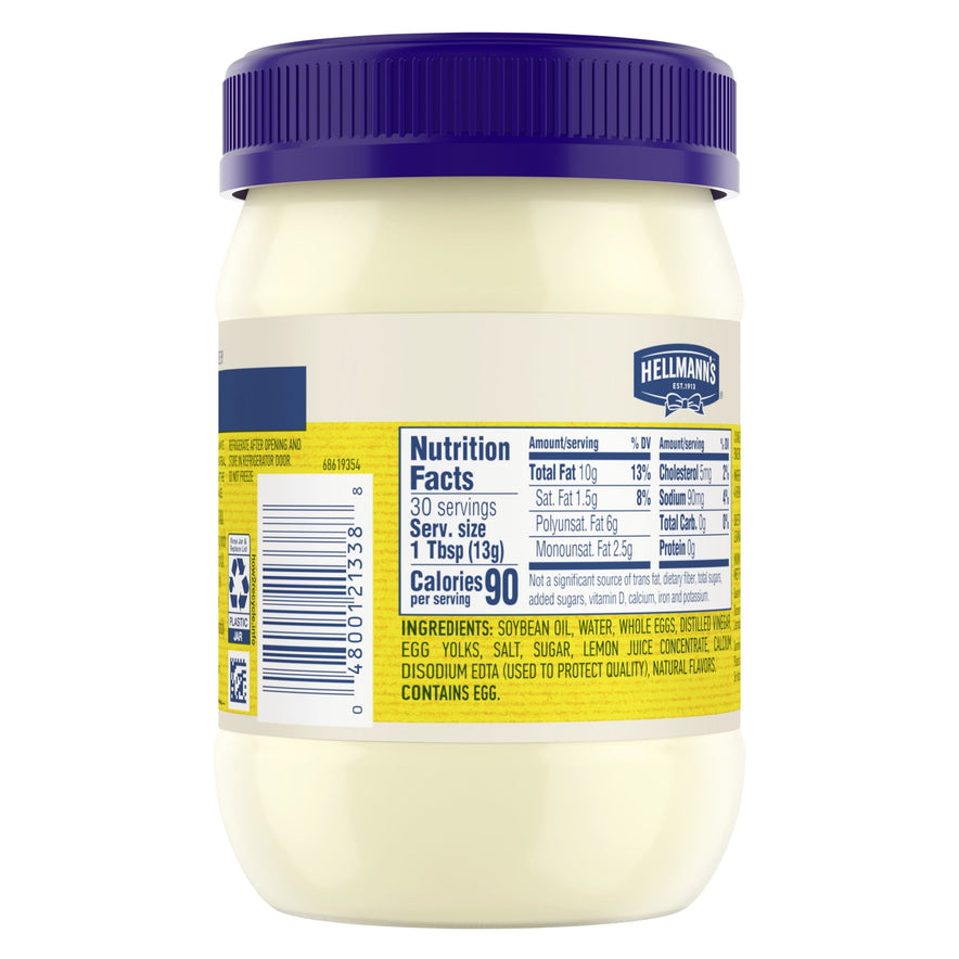 Hellmann's Made with Cage Free Eggs Real Mayonnaise, Hellmann's Real Mayonnaise is proudly made with real, simple ingredients like cage-free eggs, oil, and vinegar. We know that to really "Bring Out The Best," we need to do more than just taste great. That's why our delicious Blue Ribbon Quality Mayonnaise is made with real eggs, oil, and vinegar sourced from trusted American farms. Even after 100 years, we're still committed to using premium ingredients to craft the highest quality mayonnaise. It's simple. We use the finest, real ingredients in Hellmann's Real. We use 100% cage-free eggs and are committed to 100% responsibly sourced soybean oil. Our authentic mayonnaise is rich in Omega 3-ALA (contains 650 mg ALA per serving, which is 40% of the 1.6g Daily Value for ALA), and is also gluten-free and certified kosher. And nothing beats the taste of real mayo. It's the ideal condiment for spreading on sandwiches and wraps, grilling juicy burgers, mixing creamy dips, and preparing fresh salads. Use it to make outrageously delicious meals like our Parmesan Crusted Chicken and Best Ever Juicy Burger, and even turn your Thanksgiving leftovers into a deliciously creamy meal with our Turkey Casserole. Hellmann's is known as Best Foods West of the Rockies. Discover our recipes, products, information about our sourcing, and more on our website, Hellmanns.com.