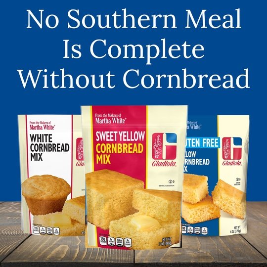 Create family traditions in minutes with the convenience and delicious taste of Gladiola Sweet Yellow Cornbread Mix. From the makers of Martha White Cornbread Mix, this sweet cornbread mix contains all the dry ingredients you need to create delicious cornbread, corn cakes or corn muffins at home. Just add milk and an egg to the baking mix, and stir to combine. After mixing, bake your cornbread according to the time on the bag. For cornbread, pour batter into a well-seasoned cast-iron skillet or square baking dish. You can even use this as a corn muffin mix by pouring the batter into muffin tins. Serve warm cornbread muffins with butter, honey or on their own as an accompaniment to almost any meal. This Gladiola Cornbread Mix comes in a 7 ounce pouch that is easy to keep on hand in a pantry or cupboard, so you can have delicious cornbread in minutes. Making Family Traditions Easy For Over 100 Years.