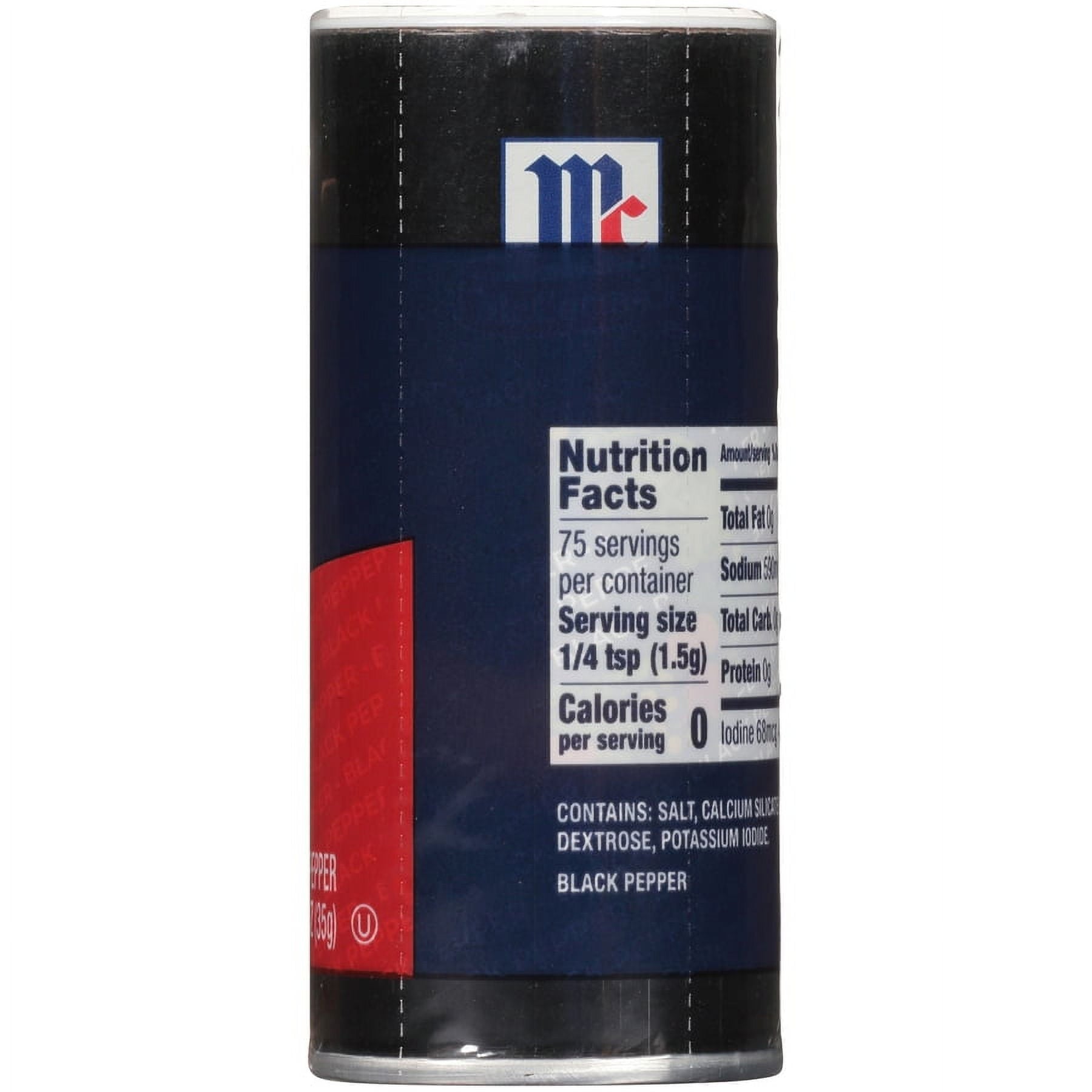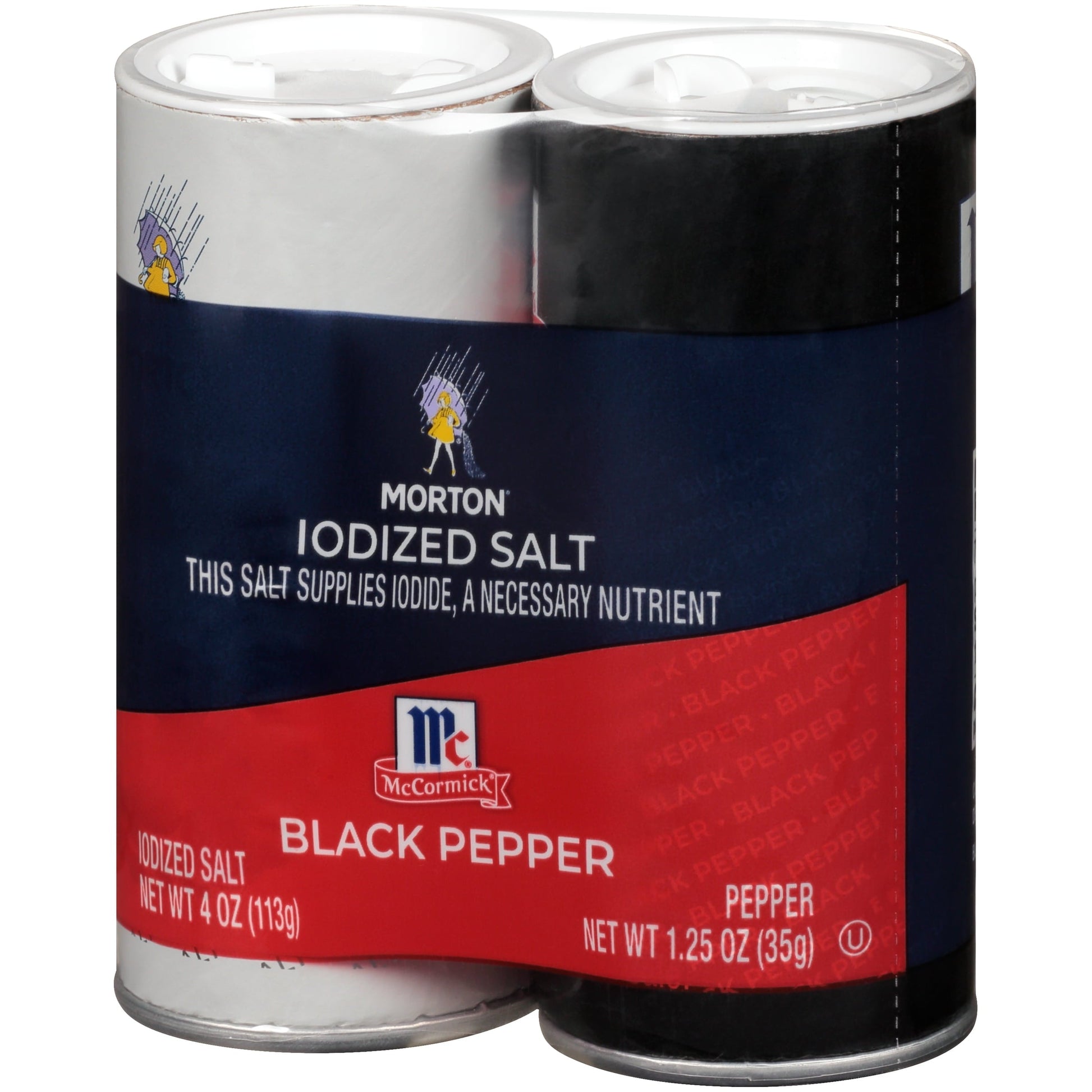 Shaker set includes 4 oz. salt shaker and 1.25 oz. McCormick pepper shaker