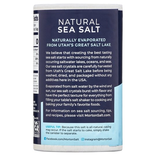 Morton Salt Natural Sea Salt is an all-purpose salt perfect for everything from cooking and baking to filling the shakers on your table. Our Natural Sea Salt crystals are naturally collected from Utah's Great Salt Lake before being washed, dried, and packaged without any additives in the USA. At Morton Salt, we make sure only the best salt crystals reach your plate, so every dish you create will be as flavorful as you intend.