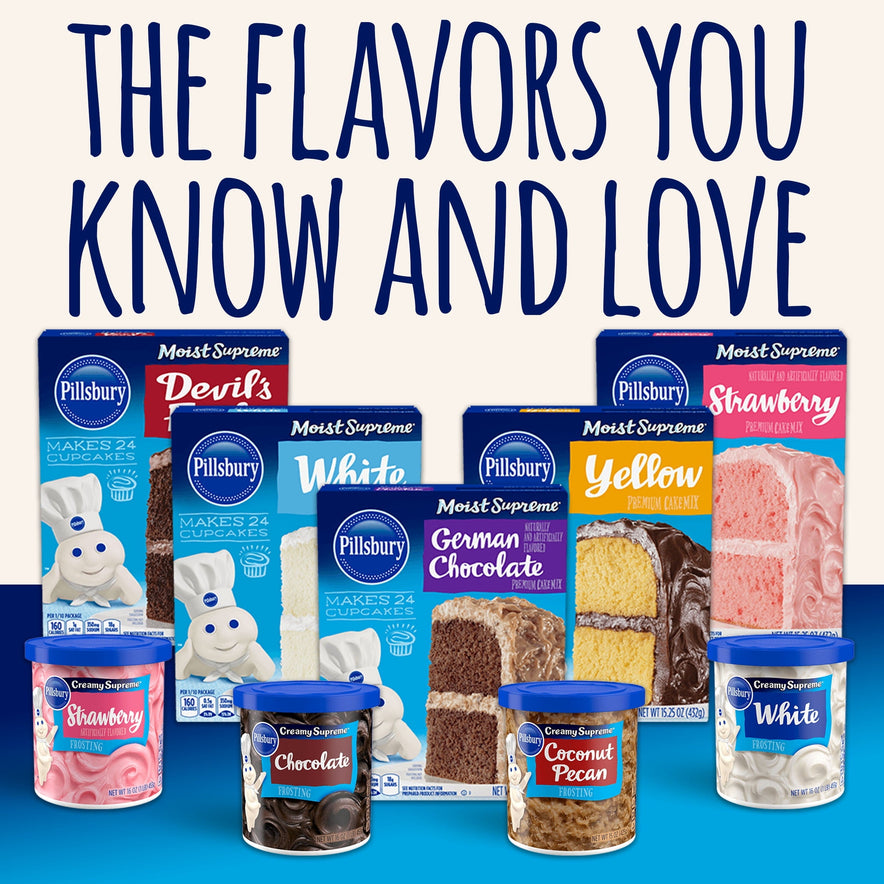 Easily prepare a delicious dessert with Pillsbury Moist Supreme Premium Strawberry Cake Mix. This Pillsbury cake mix delivers the classic taste of strawberry cake with a moist texture and easy-to-follow instructions. This strawberry fruit cake mix contains all the dry ingredients you need to create delicious desserts at home in just three steps. Simply add water, vegetable oil and eggs to the dry baking mix, and stir to combine. After mixing the ingredients, bake your strawberry cake according to the time given on the box. This boxed cake mix makes enough batter for a 13 by 9 inch cake, two 8 inch round cakes or a standard Bundt cake. It can also be used as a cupcake mix to make up to 24 birthday cupcakes. Decorate the cooled cake with Pillsbury frosting or make your own cake creations like strawberry cream cheese cake balls or a strawberry dessert trifle for a special treat. Pillsbury Strawberry Cake Mix is great for celebrations, an after dinner surprise or special occasions, big and small. The pink cake mix comes in a 15.25 oz box that is easy to store in the pantry for a ready to prepare birthday cake. Pillsbury cakes will take your next party or get-together to the next level. The Pillsbury Baking website has delicious and easy recipes, fun ideas and simple baking tips to help you and your family create tasty memories together.