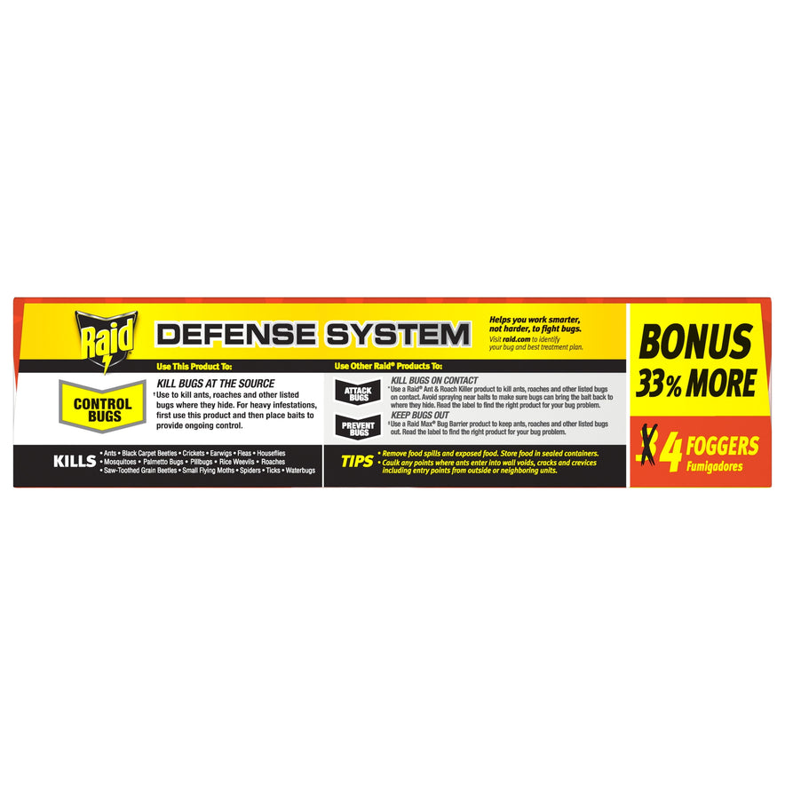 Raid Concentrated Deep Reach Fogger uses a bug killing fog to kill roaches and fleas in the hard-to-reach areas of your home. The fog treats an entire room with residual killing action against roaches for up to 2 months. The fog covers an area of up to 5,000 cubic feet and can even dissipate into closets and small areas within a room.