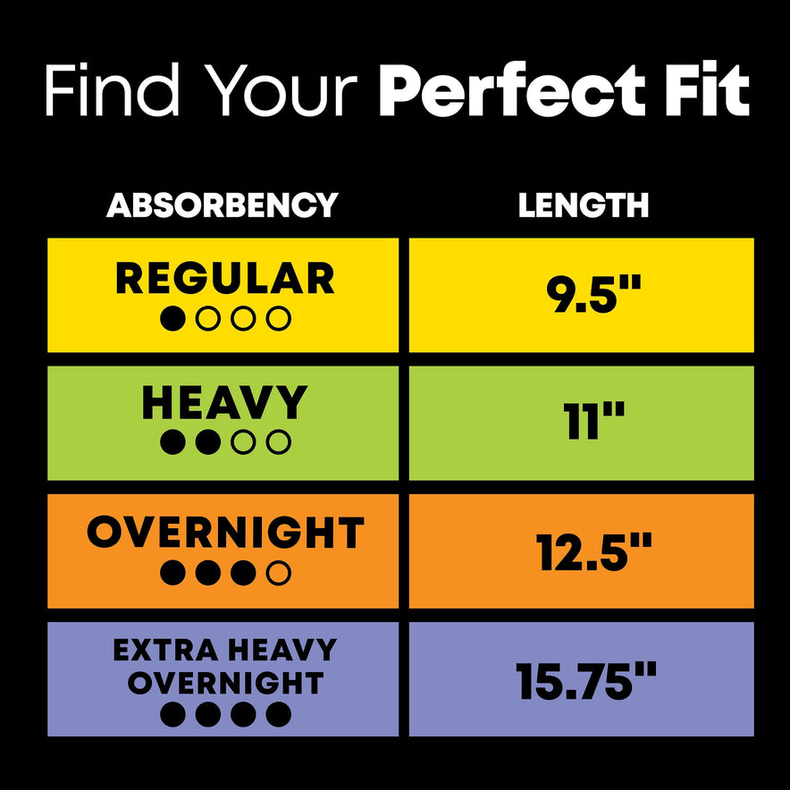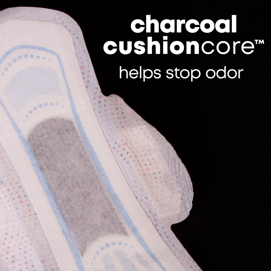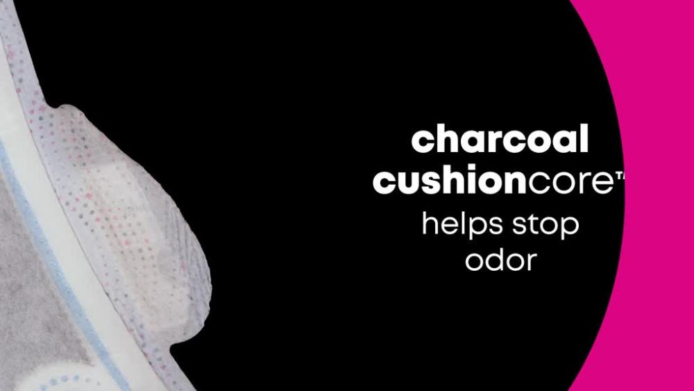 Designed to deliver all-night protection, the U by Kotex Balance Ultra Thin Overnight Pads with Wings are great for helping you get a good night's rest. These sanitary pads not only absorb instantly for up to 100% leak-free protection, but the CushionCore with Charcoal is designed to help neutralize odor and offer comfortable protection, so you can focus on your day and not on your period. These feminine pads are also dermatologist-tested, contain no harsh ingredients and are made without pesticides, fragrances, lotions, natural rubber latex and elemental chlorine. To provide outstanding skin comfort, these unscented pads are uniquely shaped to fit and flex with your body, while the wings are available to secure the pad in place throughout the night. Plus, these pads for women are made with a 60% larger front and 80% larger back* and offer up to 12 hours of night defense. With individual wrapping in vibrant colors and patterns, you can take U by Kotex Balance Ultra Thin Period Pads wherever you go! For period protection during the day, try U by Kotex Balance Ultra Thin Pads. U by Kotex women’s pads are FSA/HSA/HRA-eligible in the US. Packaging may vary from images shown. (*vs. U by Kotex Balance Ultra Thin Regular Pad)