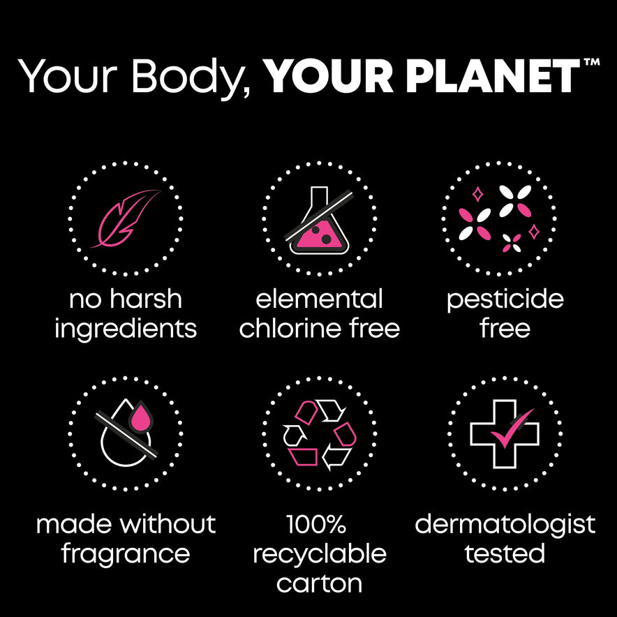 No Harsh Ingredients: Our sanitary pads are dermatologist-tested and made without fragrances, lotions, pesticides and natural rubber latex